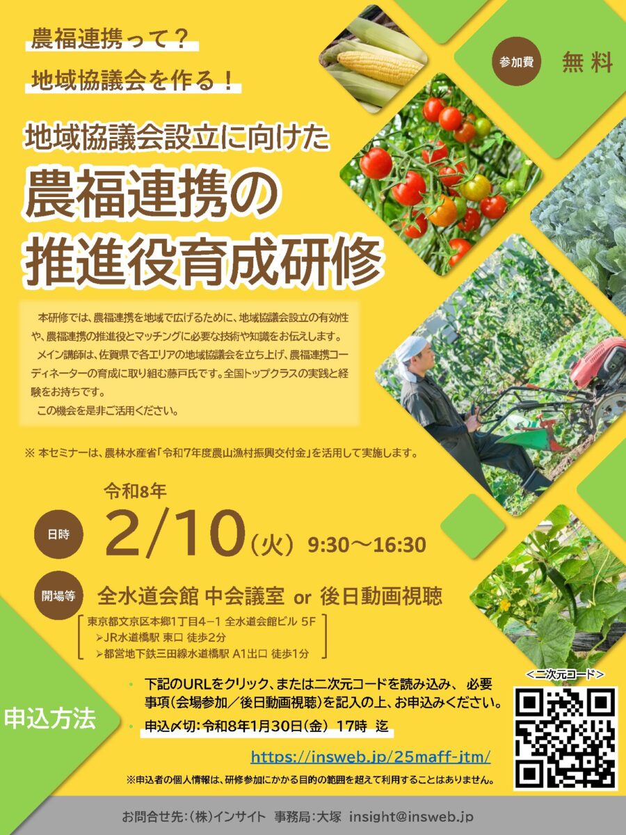 2/10(火)「地域協議会設立に向けた農福連携の推進役育成研修」開催